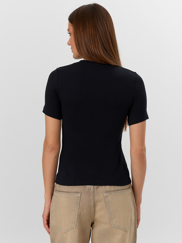 Женская футболка прилегающего силуэта — это классика базового гардероба, которая идеально подчеркивает фигуру и обеспечивает комфорт в повседневной носке. Круглая горловина придаёт изделию лаконичный и универсальный вид, а короткие рукава делают модель подходящей для теплых дней и многослойных образов. Нижние срезы футболки и рукавов обработаны швом вподгибку, что добавляет аккуратности и долговечности изделию. Материал, из которого выполнена модель, — хлопок с небольшим содержанием эластичных волокон, обеспечивает мягкость, воздухопроницаемость и свободу движений. Такая футболка легко сочетается с джинсами, юбками и шортами, что делает её идеальным выбором для повседневного или спортивного стиля. Простой и практичный элемент гардероба, который выделяется качеством и удобством! Рекомендуем.