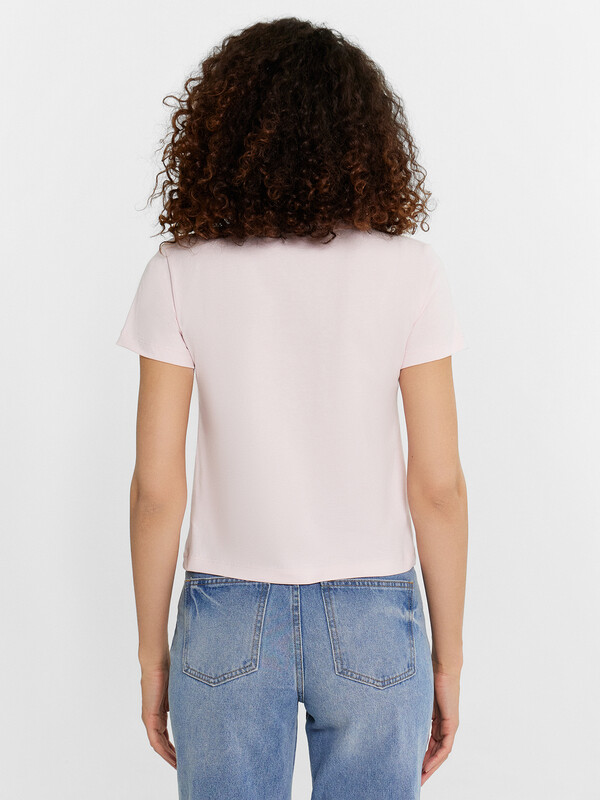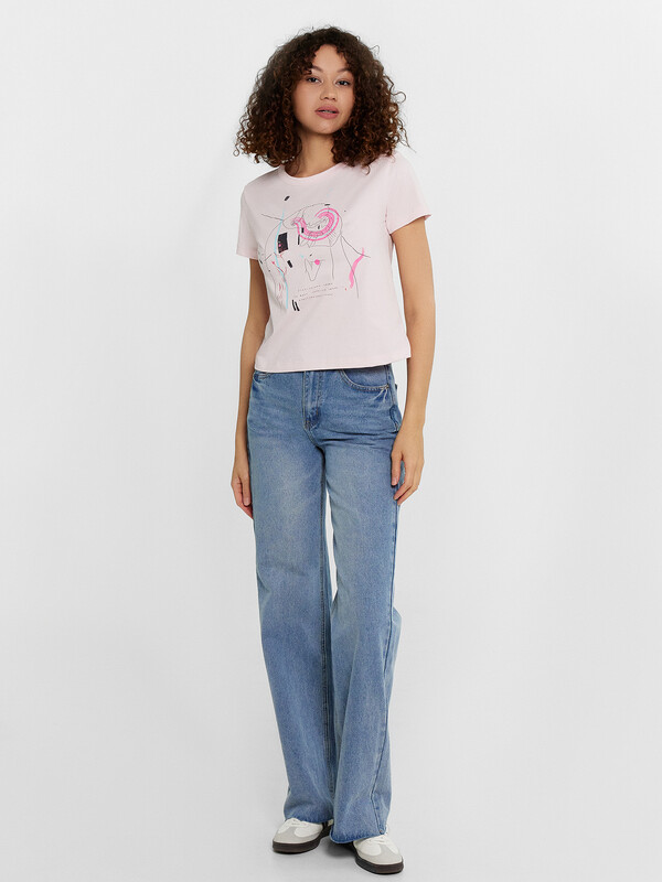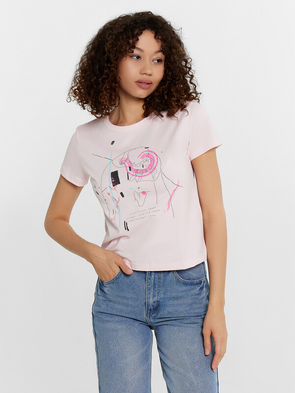 Женская футболка прямого силуэта – отличный выбор для стильного и удобного повседневного гардероба. Укороченная модель с круглой горловиной и короткими рукавами добавляет современный акцент в образ. Нижние срезы футболки и рукавов аккуратно обработаны швом вподгибку, что обеспечивает долговечность и аккуратный вид. Эта футболка идеально сочетается с различными элементами гардероба, позволяя вам создавать разнообразные образы.