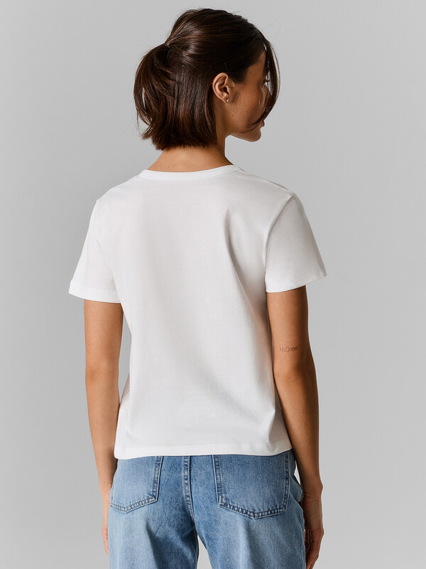 Женская футболка прямого силуэта – отличный выбор для стильного и удобного повседневного гардероба. Укороченная модель с круглой горловиной и короткими рукавами добавляет современный акцент в образ. Нижние срезы футболки и рукавов аккуратно обработаны швом вподгибку, что обеспечивает долговечность и аккуратный вид. Эта футболка идеально сочетается с различными элементами гардероба, позволяя вам создавать разнообразные образы.