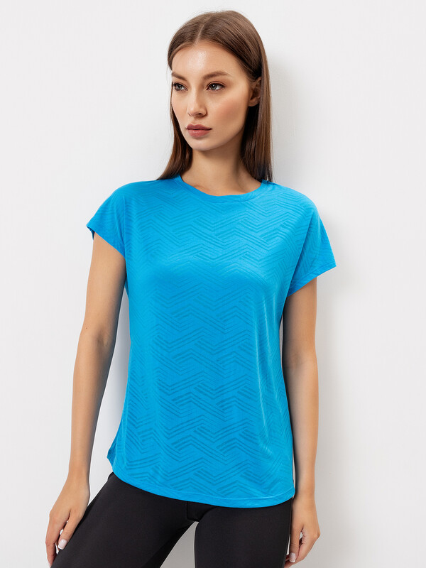 Спортивная трикотажная футболка прямого силуэта. В составе полотна – натуральная вискоза и полиэстер, который повышает износостойкость и помогает эффективно отводить влагу. Горловина круглая, рукава короткие. Отличный вариант для спорта, домашних дел и прогулок!