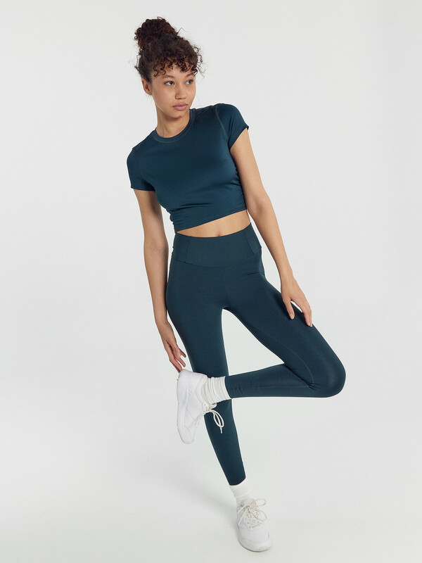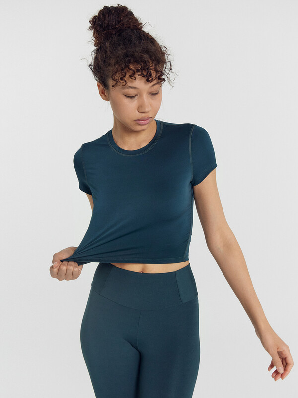 Футболка укороченная, облегающего силуэта.