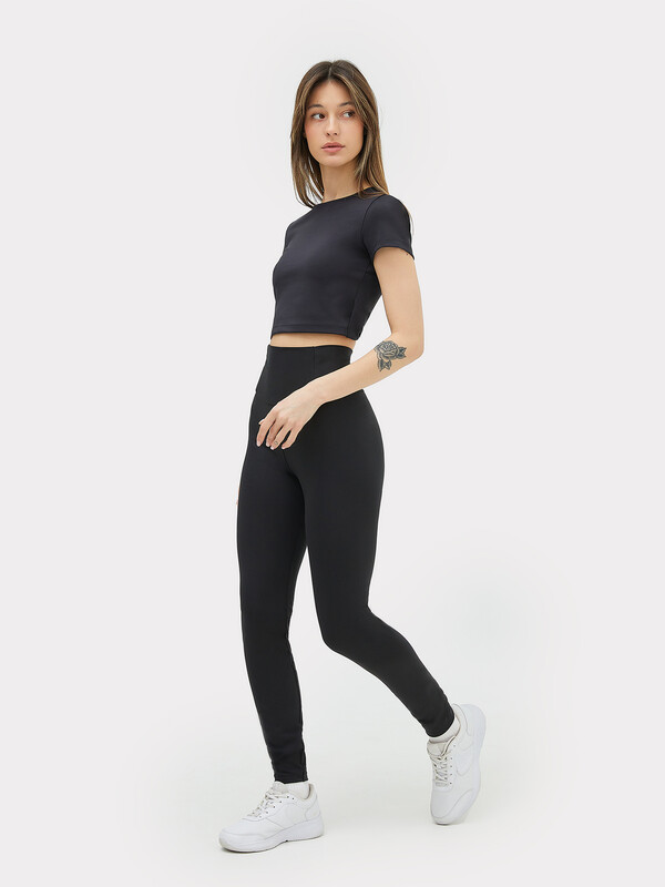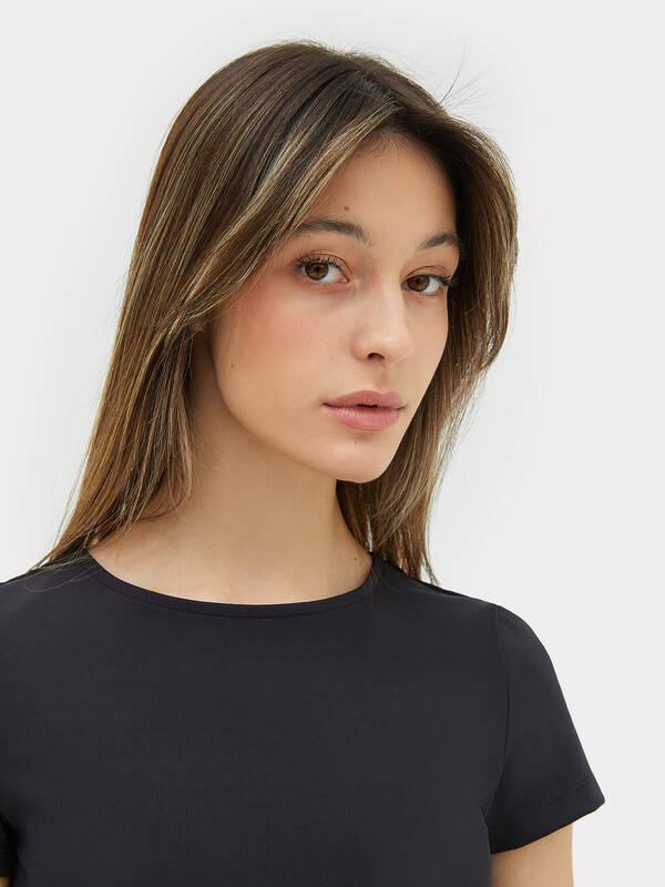 Футболка облегающего силуэта, укороченная.