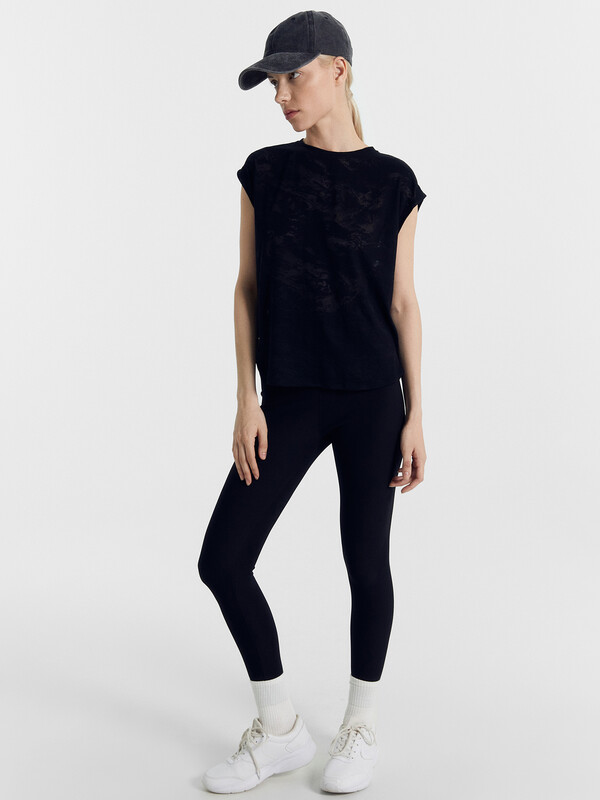 Футболка без рукавов, линия плеча спущена.