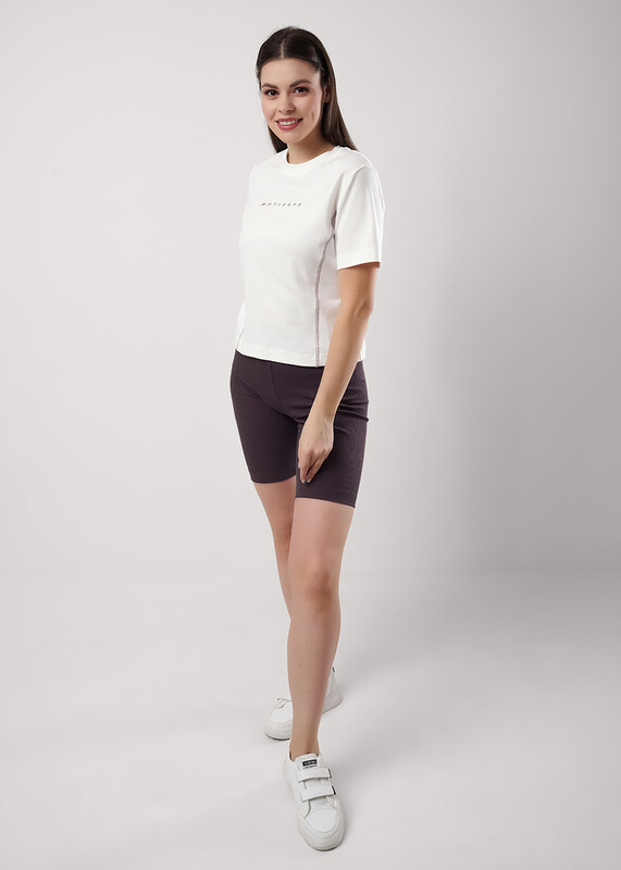 Футболка для дома и отдыха из трикотажного полотна рибана с эластаном. Укороченная, объемного силуэта. Короткий втачной рукав. Округлая горловина с широкой обтачкой. На детали переда вертикальные резы с контрастным застилом, принт.
