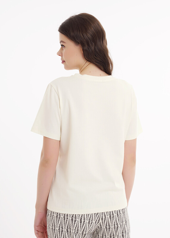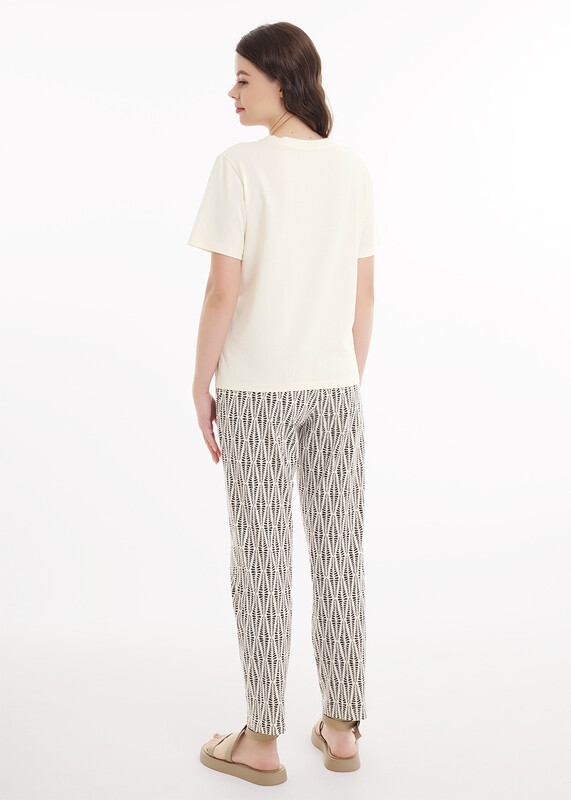 Женская домашняя футболка прямого слуэта из хлопка. На детали переда у горловины выполнен принт.