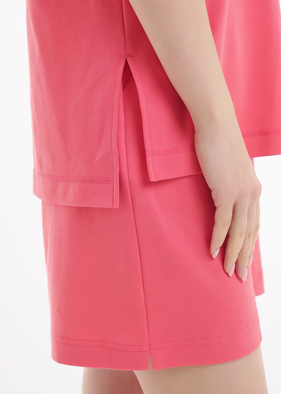 Футболка для дома и отдыха из трикотажного полотна интерлок прямого кроя. Округлая горловина с обтачкой. По горловине, низу рукава и изделия застилы. Короткий рукав со спущенный линией плеча. Спереди и по рукаву принт. По бокам разрезы.