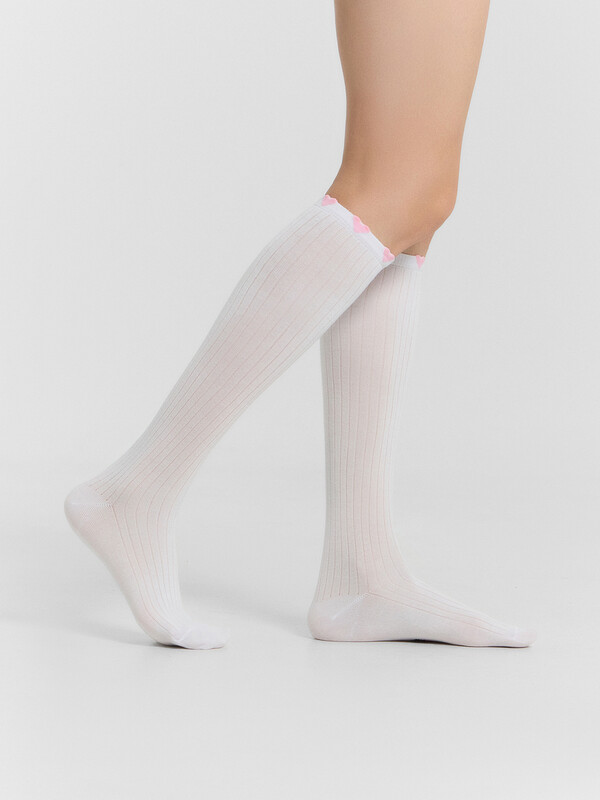 Рис.3212 Детские однотонные гольфы выполненные перекидным переплетением (лапша) 5:1 и пикотом на бортике в виде сердечек.