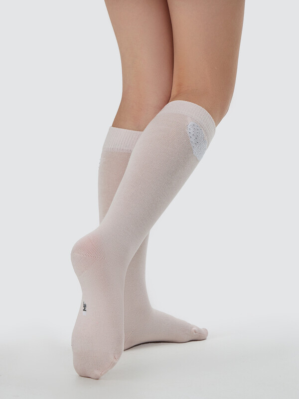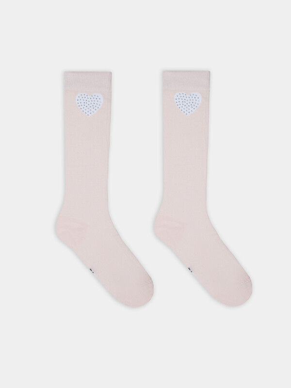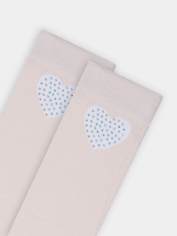 Рис.3335 Детские однотонные гольфы c рисунком в виде сердечка и печатью стразами.