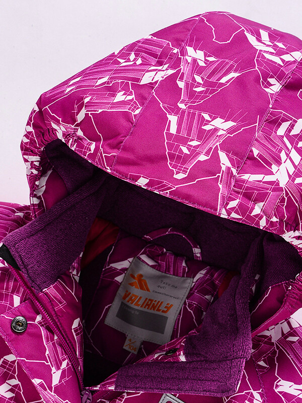 Зимний горнолыжный костюм  для девочек от бренда Valianly сочетает в себе стильный внешний вид и функциональность, необходимую для занятий зимними видами спорта. Мембранный материал, из которого изготовлен комбинезон, обеспечивает защиту от влаги и снега, что особенно важно в условиях слякоти и мокрого снега. Костюм состоит из куртки и брюк. Куртка имеет съемный капюшон с высокой стойкой, прямые рукава на резинке, боковые карманы на молнии и накладной карман внутри. Застегивается на молнию с кнопками. В талии есть резинка для регулировки объема. Верхняя часть воротника предотвращает натирание подбородка. Подкладка выполнена из флиса и полиэстера для дополнительной теплоизоляции. Снегозащитная юбка с кнопками защищает от ветра и снега. Брюки имеют регулируемые лямки, боковые прорезные карманы, регулируемые бретели и штрипки на обувь для фиксации. В области колен предусмотрены поперечные швы для предотвращения вытягивания материала. Также на брюках есть снегозащитные гамаши для дополнительной защиты от снега. Печатный принт с горами добавляем оригинальности одежде. Спешите купить красивый и функциональный комбинезон для вашей маленькой модницы!