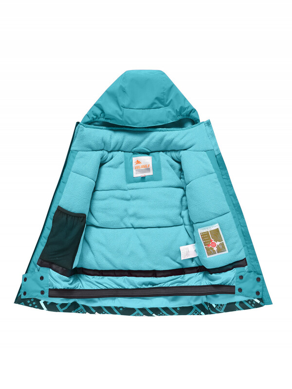 Куртка оснащена защитой подбородка, молнией, внутренним и внешними карманами, снегозащитной юбкой, карманом ски пасс.
