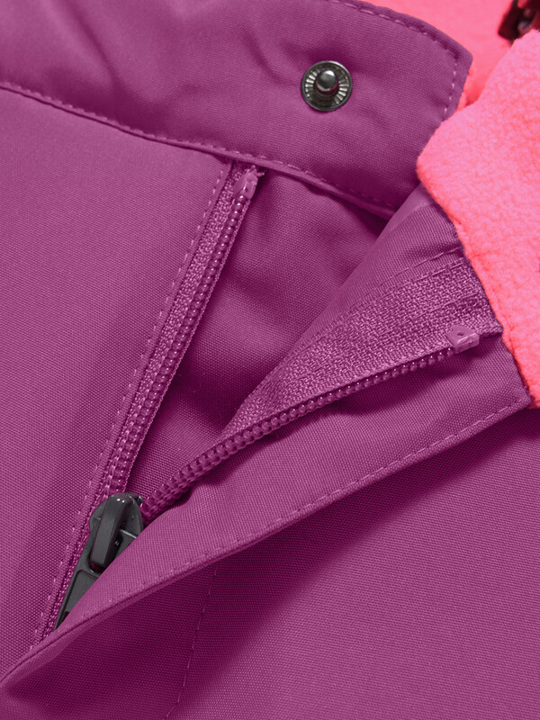 Съемный капюшон и воротник-стойка, утепленные флисом, защищают от холода и ветра.