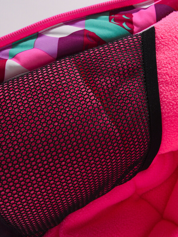 Сетчатый карман внутри куртки удобен для хранения мелких предметов, а снегозащитная юбка на куртке предотвращает попадание снега под одежду.