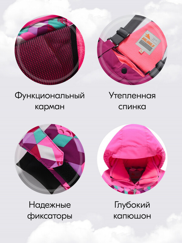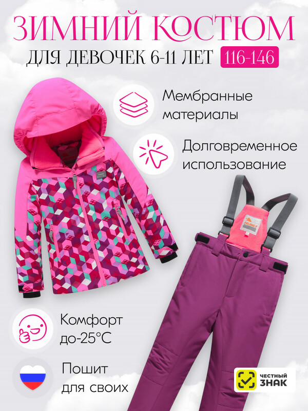 Этот костюм станет отличным выбором для активных девочек, обеспечивая как стильный внешний вид, так и комфорт во время активного отдыха! Уверены, вы по достоинству оцените высокое качество нашей продукции! Пусть зима станет временем незабываемых приключений!