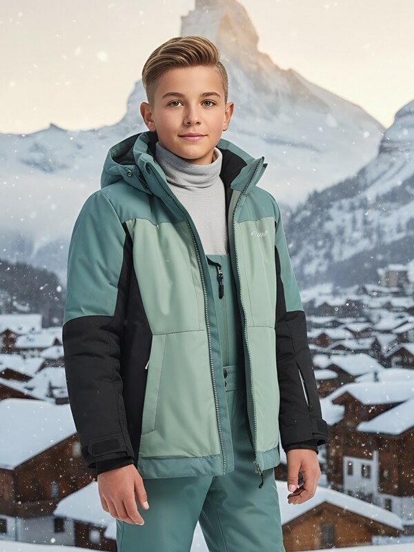 Представляем вашему вниманию подростковый горнолыжный костюм в виде полукомбинезона с высокой посадкой и зимней куртки, которые идеально подходят для активных зимних приключений. Этот зимний костюм для мальчика сочетает в себе стильный дизайн и множество функциональных деталей, обеспечивая комфорт и защиту на склонах.