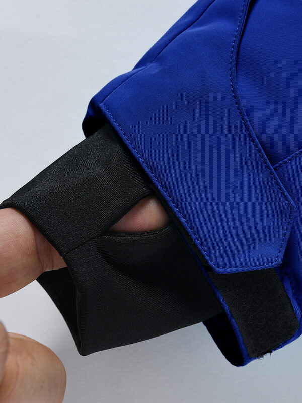 Прорезиненная молния обеспечивает надежную защиту от влаги, а трикотажные манжеты с прорезями для пальцев сохраняют тепло и предотвращают попадание снега внутрь рукава.
