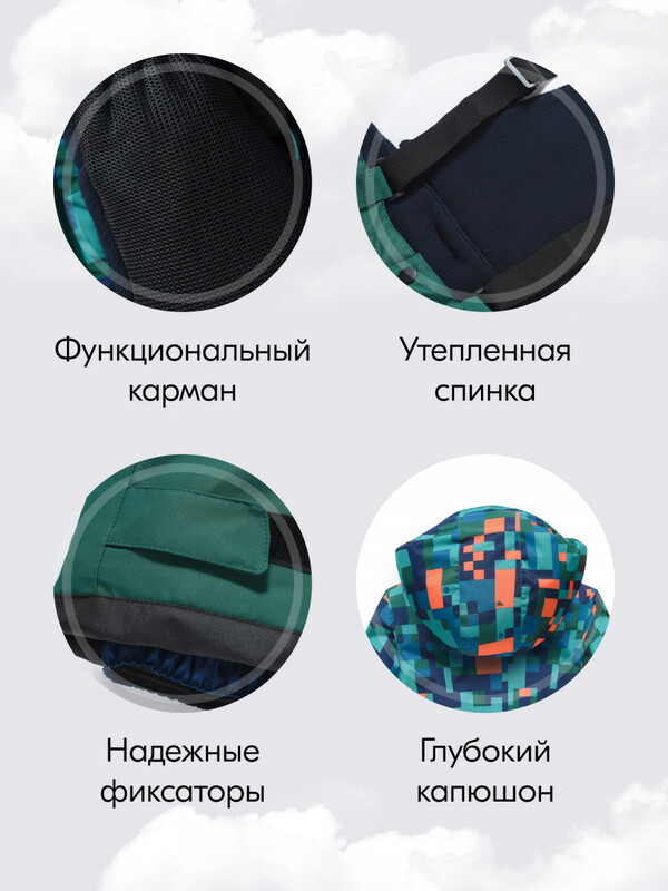 Особенности модели: family look, ветрозащита, водоотталкивающий материал, гипоаллергенный материал, дышащий материал, потайной карман