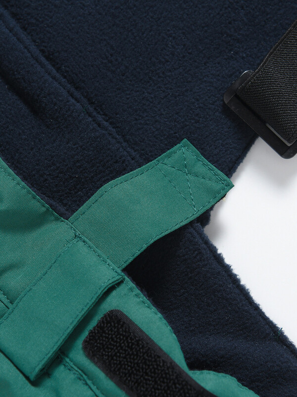 Утяжки на липучках в области талии позволяют идеально подогнать брюки, предотвращая попадание снега и холода.