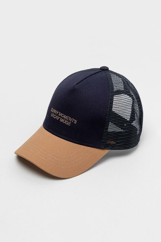 Кепка для мальчика из текстиля и сетки. Спереди оригинальная вышивка. Регулируется по ширине и фиксируется на затылке с помощью пластиковой застежки.