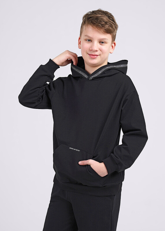 Актуальная модель оверсайз худи из хлопкового футера - незаменимая вещь в гардеробе. Минималистичный принт, удобные манжеты и пояс по низу изделия, универсальный карман кенгуру, стильная отделка тесьмой по капюшону. Сочетай худи с любимыми джоггерами.