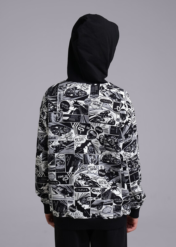 Принтованное худи из мягкого футера в комиксном стиле сделает любой look дерзким и модным! Его можно надеть с джинсами или спортивными джоггерами. Свободная посадка oversize, эластичные манжеты и пояс из кашкорсе.