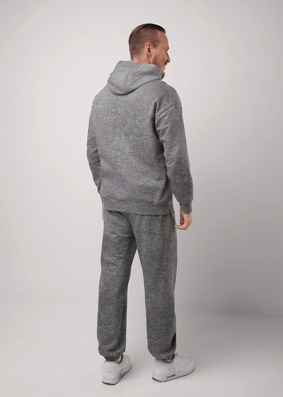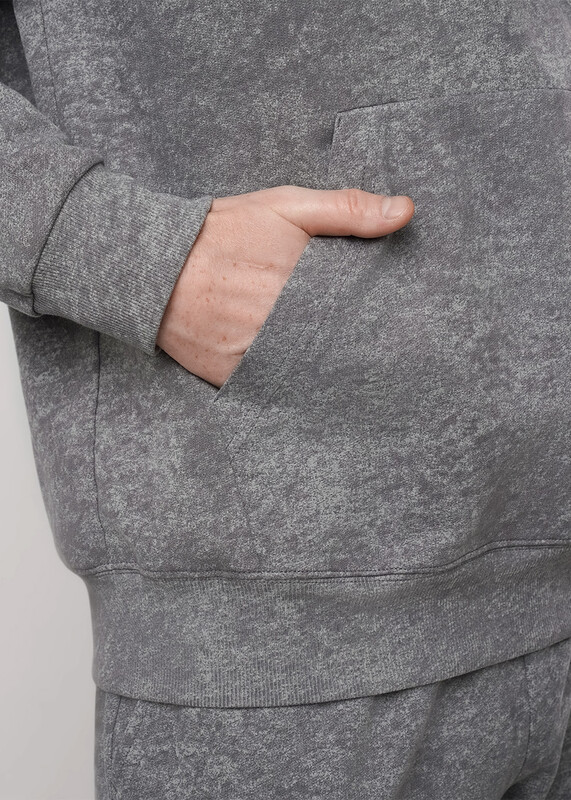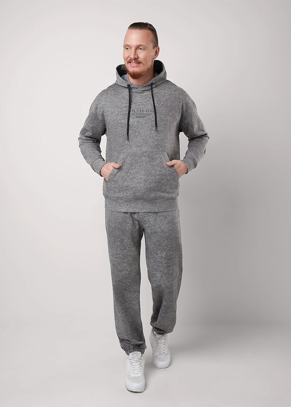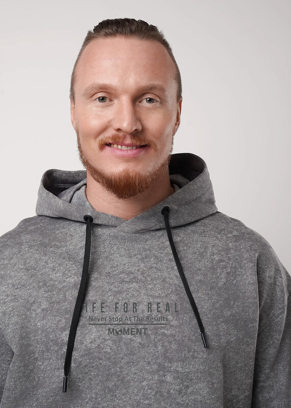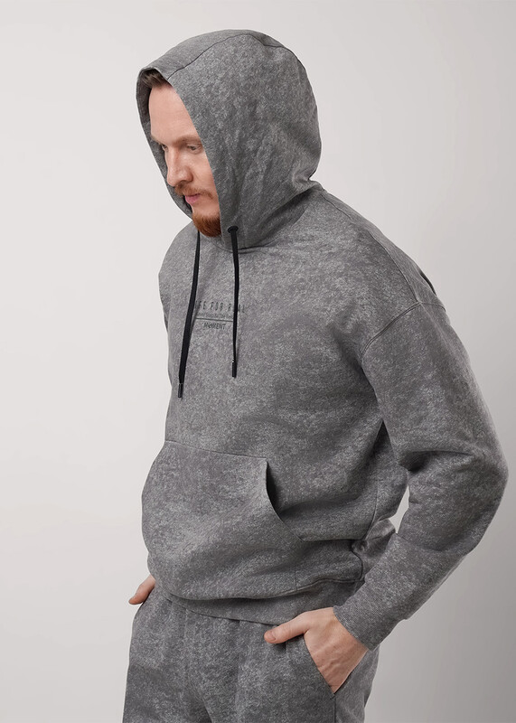 Мужская толстовка увеличенного объёма с капюшоном. Модель выполнена из трикотажного набивного полотна с эффектом варенки. Модель дополнена карманом кенгуру и дизайнерским принтом. Стильное решение для повседневного образа.