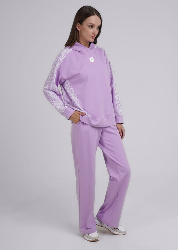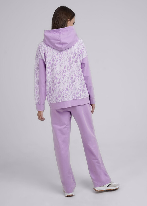 Джемпер свободного силуэта из трикотажного полотна двух видов с капюшоном. Рукав реглан комбинированный с рельефами. По низу рукава и изделия притачной манжет. Спереди нашивка.