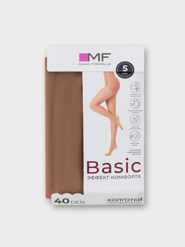 Рис.3508 Колготки женские однотонные, полиамидные, без ластовицы, эластичный (круглый) шов, плотностью 40 den.