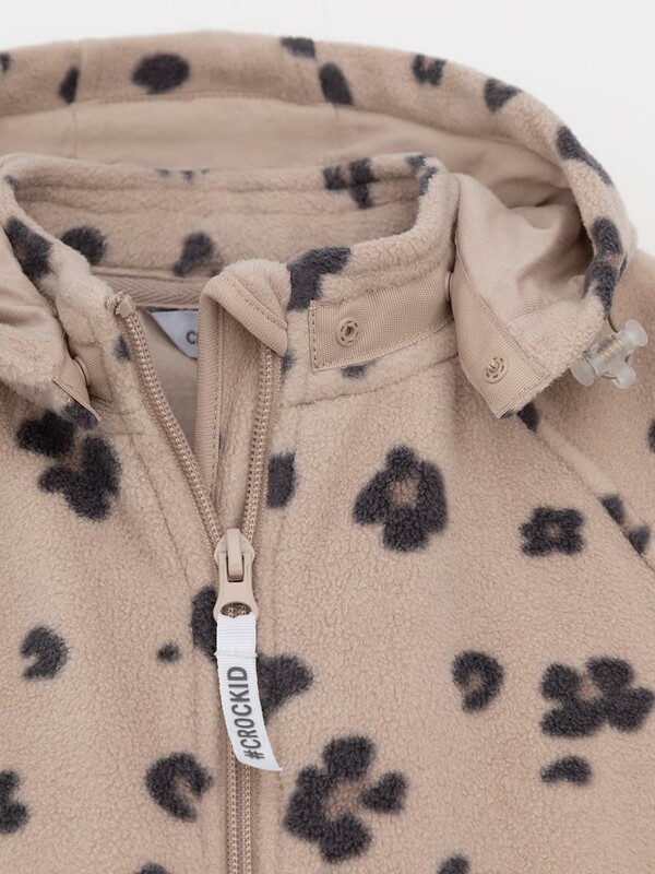 Флисовый комбинезон для девочки со съёмным капюшоном. Капюшон регулируется по ширине с помощью эластичной утяжки со стопперами. Подклад выполнен из гладкого трикотажа супрем, произведённого из высококачественного натурального хлопка. Застёгивается на удлинённую молнию с мягкой защитой шеи и подбородка. В размерах 62, 68 и 74 на рукавах и ножках есть отвороты. Оригинальная набивка выполнена из стойких, гипоаллергенных текстильных красителей. Комбинезон сохраняет цвет и форму после многократных стирок.