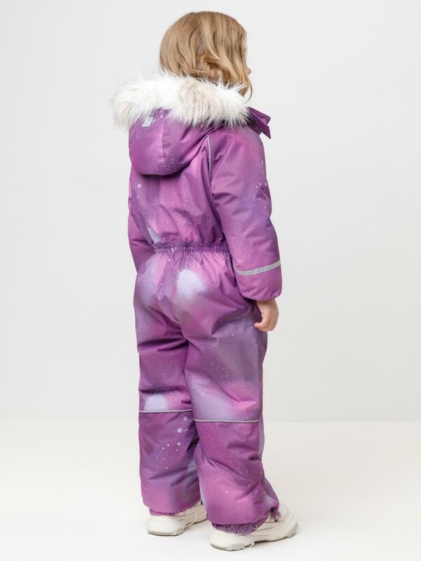 Зимний комбинезон для девочки с утеплителем Fellex®: 250 г/м2 . Выполнен из мембранной ткани с дополнительной тефлоновой обработкой, которая предохраняет изделие от загрязнений и отталкивает влагу. Подклад выполнен из 100% полиэстера Tricot. Комбинезон застёгивается на молнию и внешнюю планку на липучках и кнопках, предусмотрена защита подбородка. Съёмный капюшон имеет эластичную утяжку со стопперами и отстёгивающийся искусственный мех. Резинка по спинке обеспечивает лучшее прилегание. По бокам два кармана на молнии. Эластичные манжеты на рукавах регулируются по ширине с помощью липучки, по низу изделия - с помощью кнопки. Внутренняя противоснежная юбка защищает обувь от попадания снега и удерживает комбинезон в закреплённом положении, предусмотрены отстёгивающиеся штрипки. Во всех изделиях верхнего ассортимента для безопасности ребёнка предусмотрены светоотражающие элементы.