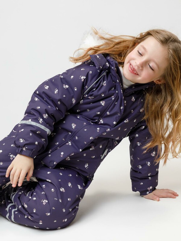 Зимний комбинезон для девочки с утеплителем Fellex®: 250 г/м2 . Выполнен из мембранной ткани с дополнительной тефлоновой обработкой, которая предохраняет изделие от загрязнений и отталкивает влагу. Подклад выполнен из 100% полиэстера Tricot. Комбинезон застёгивается на молнию и внешнюю планку на липучках и кнопках, предусмотрена защита подбородка. Съёмный капюшон имеет эластичную утяжку со стопперами и отстёгивающийся искусственный мех. Резинка по спинке обеспечивает лучшее прилегание. По бокам два кармана на молнии. Эластичные манжеты на рукавах регулируются по ширине с помощью липучки, по низу изделия - с помощью кнопки. Внутренняя противоснежная юбка защищает обувь от попадания снега и удерживает комбинезон в закреплённом положении, предусмотрены отстёгивающиеся штрипки. Во всех изделиях верхнего ассортимента для безопасности ребёнка предусмотрены светоотражающие элементы.