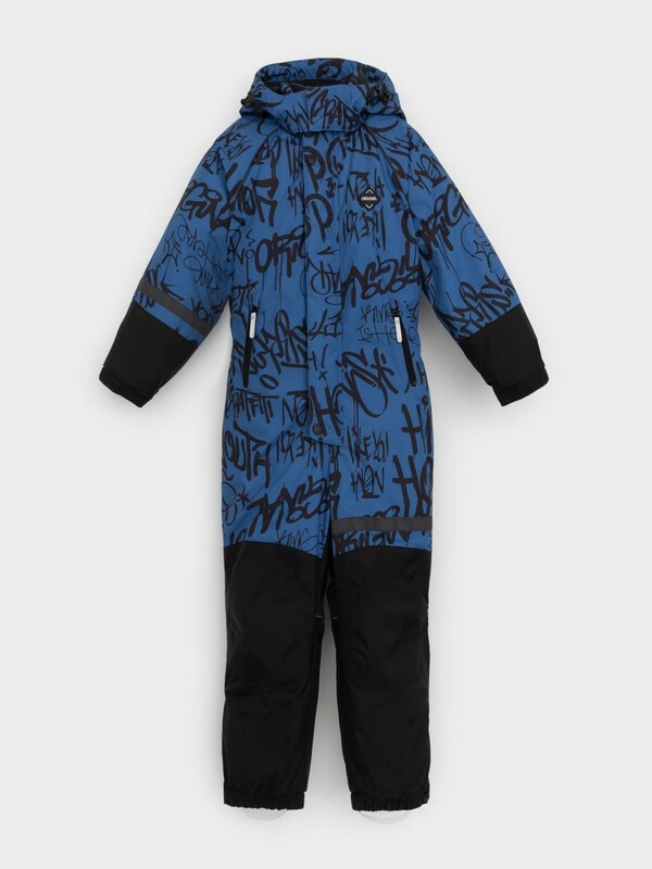 Зимний комбинезон для мальчика с утеплителем Fellex®: 250 г/м2 . Выполнен из мембранной ткани с дополнительной тефлоновой обработкой, которая предохраняет изделие от загрязнений и отталкивает влагу. Подклад выполнен из 100% полиэстера Tricot. Комбинезон застёгивается на молнию и внешнюю планку на липучках и кнопках, предусмотрена защита подбородка. Съёмный капюшон имеет эластичную утяжку со стопперами. Резинка по спинке обеспечивает лучшее прилегание. По бокам два кармана на молнии. Эластичные манжеты на рукавах регулируются по ширине с помощью липучки, по низу изделия - с помощью кнопки. Внутренняя противоснежная юбка защищает обувь от попадания снега и удерживает комбинезон в закреплённом положении, предусмотрены отстёгивающиеся штрипки. Во всех изделиях верхнего ассортимента для безопасности ребёнка предусмотрены светоотражающие элементы.