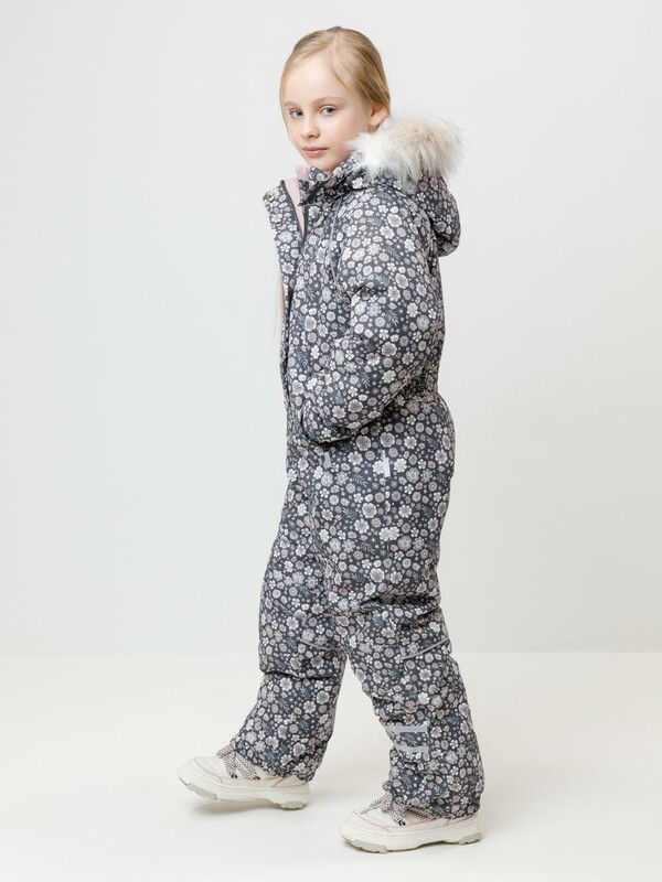 Зимний комбинезон для девочки с утеплителем Fellex®: 250 г/м2 . Выполнен из мембранной ткани с дополнительной тефлоновой обработкой, которая предохраняет изделие от загрязнений и отталкивает влагу. Подклад выполнен из 100% полиэстера Tricot. Комбинезон застёгивается на молнию и внешнюю планку на липучках и кнопках, предусмотрена защита подбородка. Съёмный капюшон имеет эластичную утяжку со стопперами и отстёгивающийся искусственный мех. Резинка по спинке обеспечивает лучшее прилегание. По бокам два кармана на молнии. Эластичные манжеты на рукавах регулируются по ширине с помощью липучки, по низу изделия - с помощью кнопки. Внутренняя противоснежная юбка защищает обувь от попадания снега и удерживает комбинезон в закреплённом положении, предусмотрены отстёгивающиеся штрипки. Во всех изделиях верхнего ассортимента для безопасности ребёнка предусмотрены светоотражающие элементы.