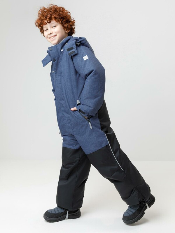Зимний комбинезон для мальчика с утеплителем SEE®: 250 г/м2 . Выполнен из мембранной ткани с дополнительной тефлоновой обработкой, которая предохраняет изделие от загрязнений и отталкивает влагу. Подклад выполнен из 100% полиэстера Tricot. Комбинезон застёгивается на молнию и внешнюю планку на липучках и кнопках, предусмотрена защита подбородка. Съёмный капюшон имеет эластичную утяжку со стопперами. Резинка по спинке обеспечивает лучшее прилегание. По бокам два кармана на молнии. Эластичные манжеты на рукавах регулируются по ширине с помощью липучки, по низу изделия - с помощью кнопки. Внутренняя противоснежная юбка защищает обувь от попадания снега и удерживает комбинезон в закреплённом положении. В размерах с 98-104 по 116-122 предусмотрены отстёгивающиеся штрипки. Во всех изделиях верхнего ассортимента для безопасности ребёнка предусмотрены светоотражающие элементы.