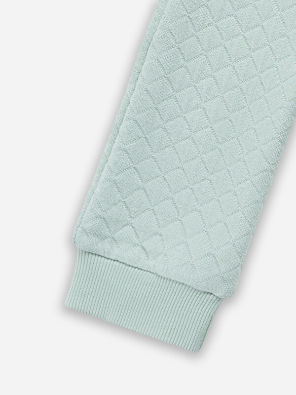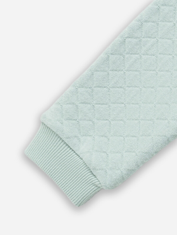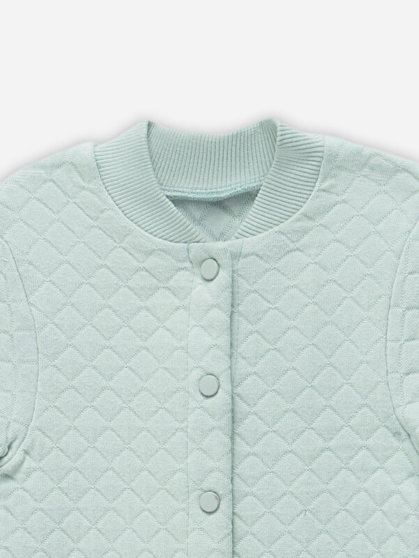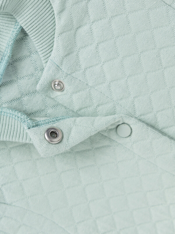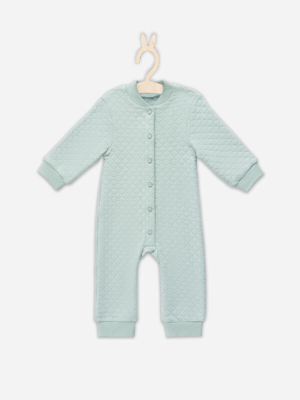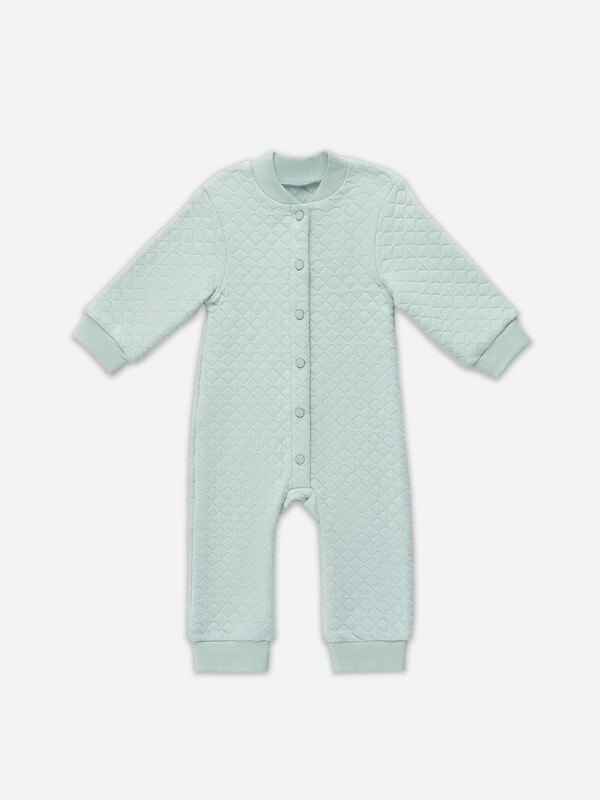 Модель имеет удобную застежку-кнопки по всей длине, что позволяет легко одевать и раздевать ребенка. Спинка изделия цельнокроеная, что обеспечивает комфорт и свободу движений. Длинные рукава и штанины дополнены мягкими манжетами из эластичной рибаны, которые хорошо фиксируются и защищают от холодного воздуха. Круглая горловина также обработана мягкой резинкой для удобной посадки. Наличие ластовицы в шаговом шве добавляет комфорта при движении.
