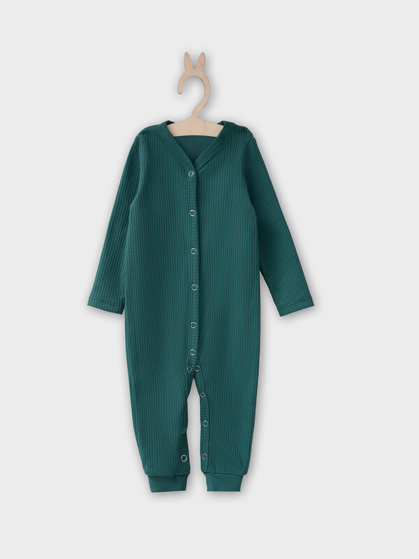 Застежка на кнопках надежно фиксирует комбинезон, но при этом остается мягкой и безопасной для кожи. Длинные рукава с аккуратными швами и манжеты из эластичной рибаны плотно облегают запястья и щиколотки, сохраняя тепло. Горловина и борта обработаны обтачками из основного материала для долговечности. Если вы хотите купить детский комбинезон, который сочетает удобство и качество, эта модель станет отличным выбором. Детский комбинезон подходит для прогулок, сна или домашнего отдыха. Натуральные материалы сохраняют мягкость после множества стирок, не теряя формы и цвета.