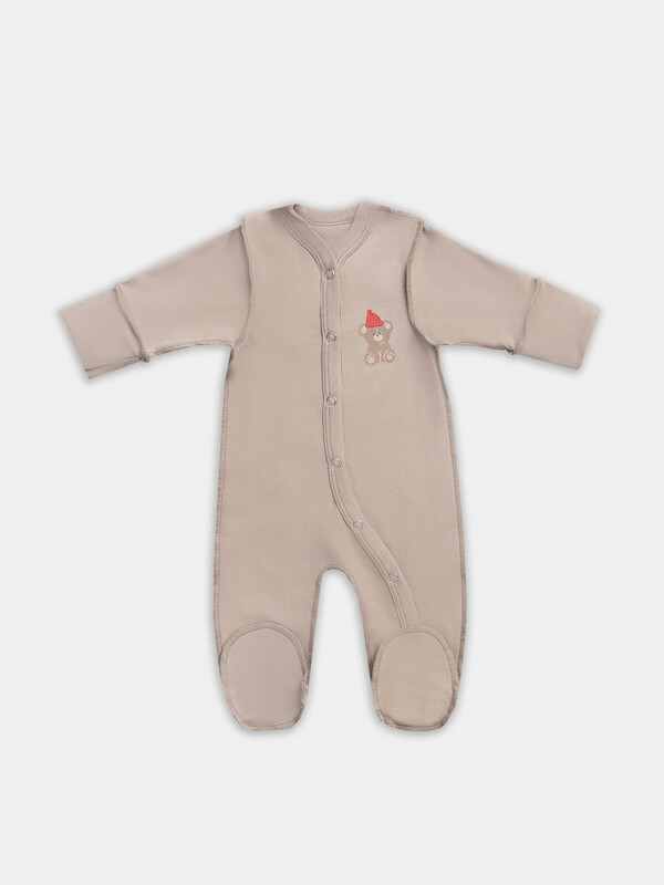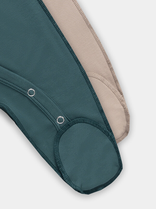 Цельнокроенная спинка и удобная застежка на кнопках от горловины до низа упрощают смену подгузника. Рукава и горловина аккуратно обработаны мягкой бейкой, которая нежно прилегает к телу. Дополнительная ластовица в шаговом шве и следы с отрезной верхней частью обеспечивают удобство и защиту.