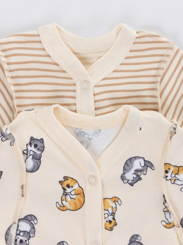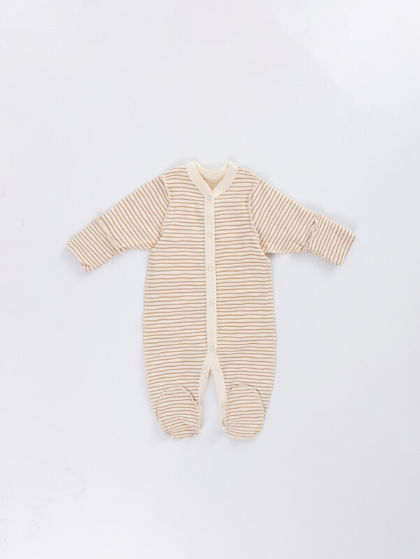 Цельнокроенная спинка и удобная застежка на кнопках от горловины до низа упрощают смену подгузника. Рукава и горловина аккуратно обработаны мягкой бейкой, которая нежно прилегает к телу. Дополнительная ластовица в шаговом шве и следы с отрезной верхней частью обеспечивают удобство и защиту.
