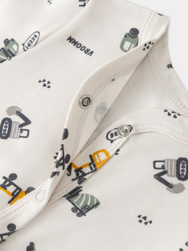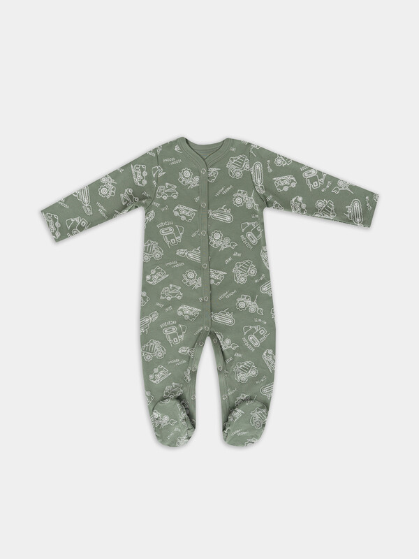 Удобная застежка-кнопки проходит от горловины до низа и переходит на левую ножку, что значительно упрощает процесс переодевания и смену подгузника. Длинные рукава и штанины-следки надежно защищают ручки и ножки от прохлады, сохраняя оптимальную температуру тела. Горловина аккуратно обработана для комфорта нежной кожи, исключая раздражение. Наличие ластовицы в шаговом шве добавляет свободы движений во время сна или активных игр.