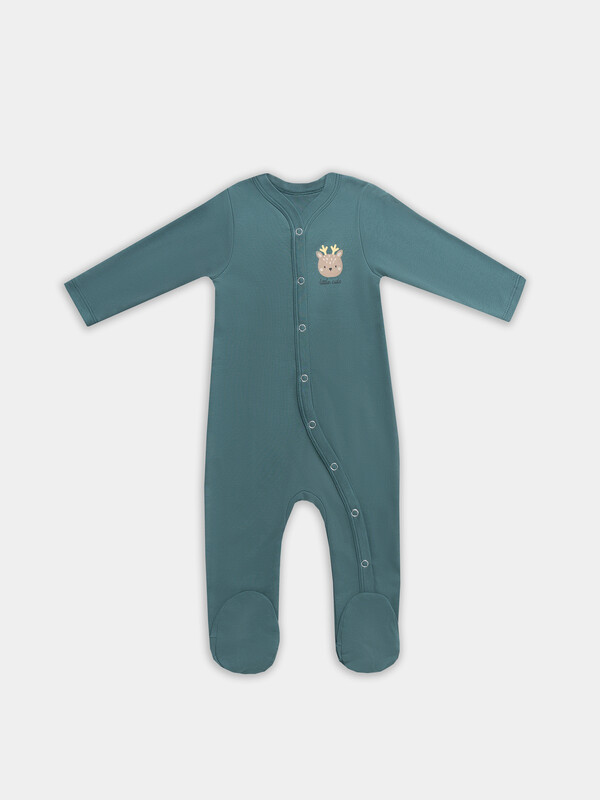 Удобная застежка-кнопки проходит от горловины до низа и переходит на левую ножку, что значительно упрощает процесс переодевания и смену подгузника. Длинные рукава и штанины-следки надежно защищают ручки и ножки от прохлады, сохраняя оптимальную температуру тела. Горловина аккуратно обработана для комфорта нежной кожи, исключая раздражение. Наличие ластовицы в шаговом шве добавляет свободы движений во время сна или активных игр.