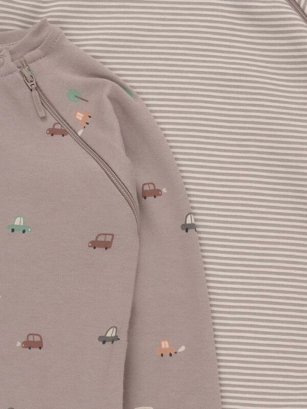 Комбинезоны для новорождённых из мягкого эластичного трикотажа интерлок, произведённого из натурального хлопка. В упаковке 2 штуки. Застёгиваются сбоку на молнию и на кнопку. Длинные рукава-реглан оканчиваются манжетами. Оригинальная набивка выполнена из стойких гипоаллергенных текстильных красителей. Все трикотажные полотна производятся в соответствии с нормами Швейцарского сертификата ЭкоТекс.