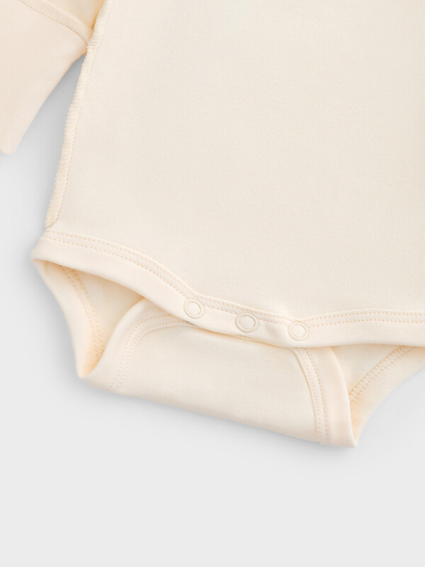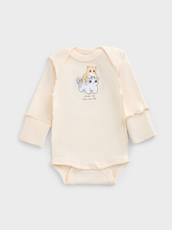 Детский комплект, состоящий из боди и ползунков, выполнен из мягкого интерлока, который обеспечивает комфорт и нежное прикосновение к коже малыша. Швы расположены на лицевой стороне изделия, что делает его особенно деликатным и безопасным для чувствительной детской кожи. Боди имеет круглую горловину, окантованную бейкой из основного материала, и длинные рукава, обеспечивающие тепло и удобство. Застежка на кнопки позволяет легко переодевать ребенка, не причиняя дискомфорта. Ползунки с открытыми ножками не ограничивают движения, а эластичный пояс мягко фиксируется на талии. Манжеты из трикотажной рибаны по низу изделия обеспечивают хорошую посадку и сохраняют форму. Комплект идеально подходит для ежедневного ношения, сочетая в себе практичность, комфорт и заботу о малыше.