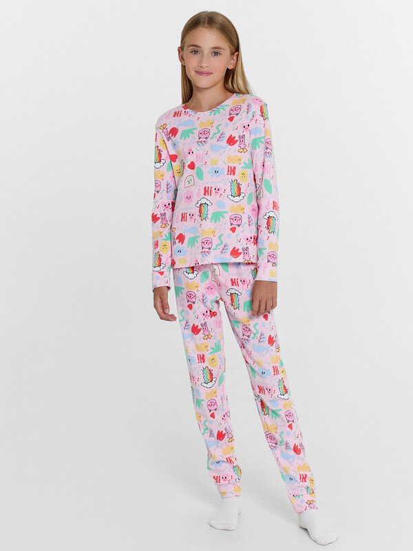 Комплект для девочек из джемпера и брюк.
