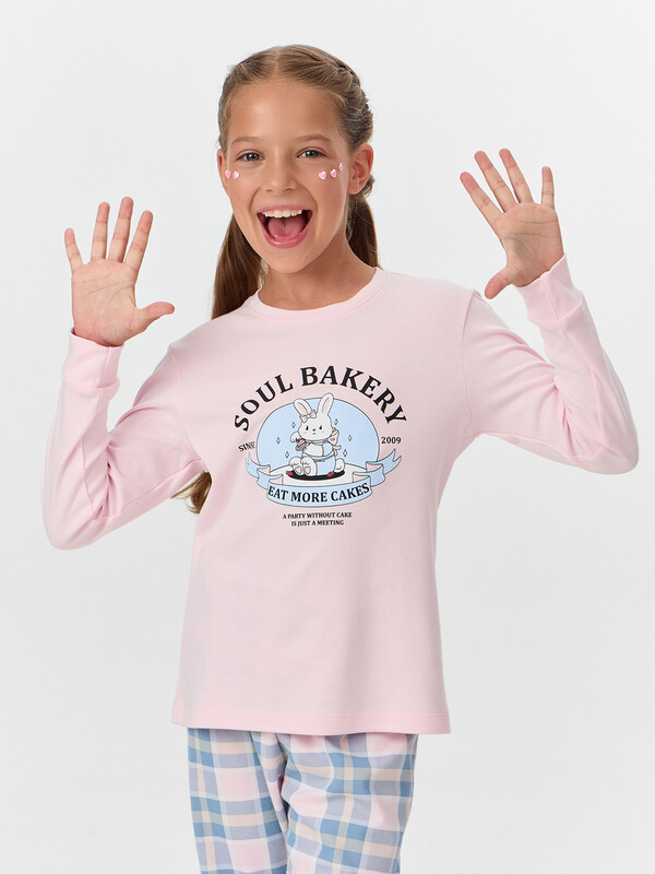 Уютный комплект для девочек, состоящий из джемпера с длинными рукавами и брюк. Джемпер свободного силуэта. Перед и спинка цельнокроеные. Горловина круглой формы из основного полотна. Рукава втачные, низ рукавов с притачными манжетами. Брюки прямые, с притачными манжетами. Пояс с эластичной тесьмой, которая обеспечивает отличную посадку. Стильная и комфортная детская пижама — лучший вариант для прохладного времени года. Широкий размерный ряд, красивые расцветки моделей в линейке. Рекомендуем!