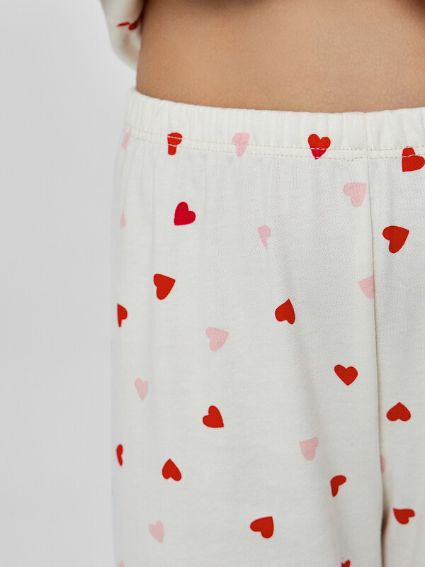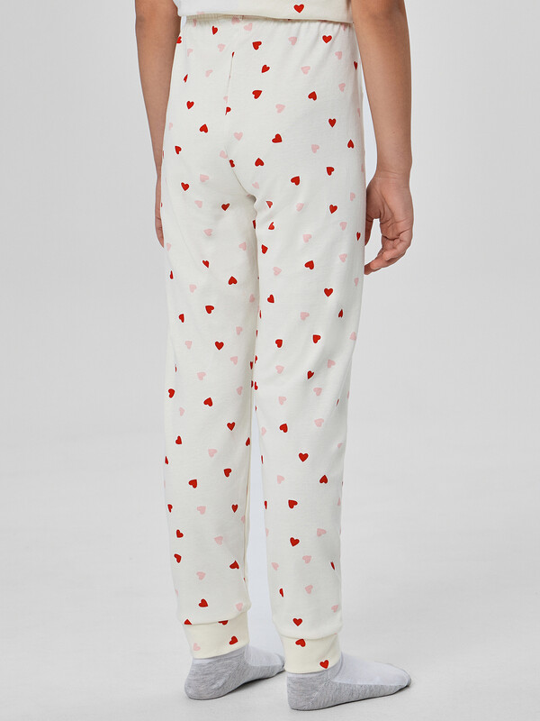 Уютный комплект для девочек с нежным узором из сердечек создан для комфортного сна и отдыха. Пижама состоит из джемпера свободного кроя с длинными рукавами и брюк прямого силуэта. Джемпер с круглой горловиной и манжетами на рукавах обеспечивает удобство и сохраняет тепло.