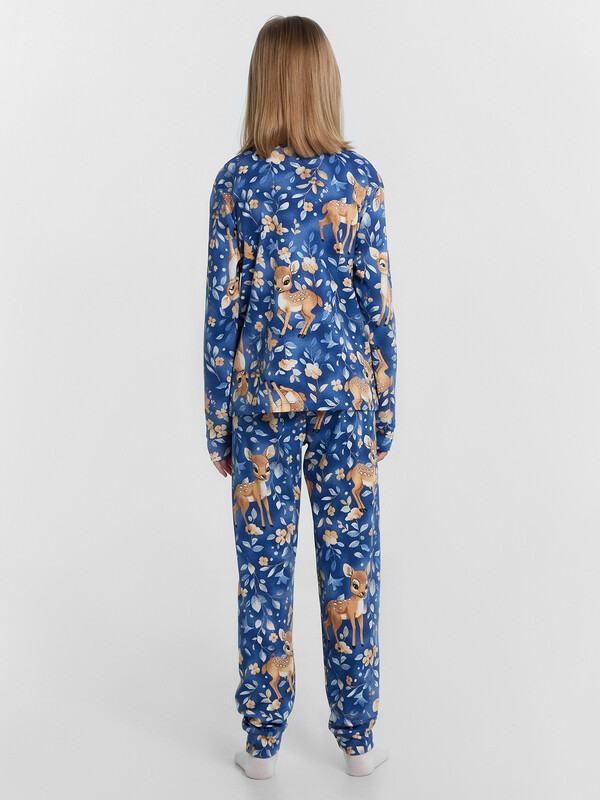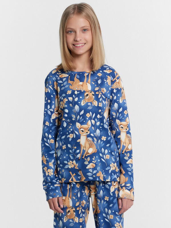 Уютный комплект для девочек, состоящий из джемпера с длинными рукавами и брюк. Джемпер свободного силуэта. Перед и спинка цельнокроеные. Горловина круглой формы из основного полотна. Рукава втачные, низ рукавов с притачными манжетами. Брюки прямые, с притачными манжетами. Пояс с эластичной тесьмой, которая обеспечивает отличную посадку. Стильная и комфортная детская пижама — лучший вариант для прохладного времени года. Широкий размерный ряд, красивые расцветки моделей в линейке. Рекомендуем!