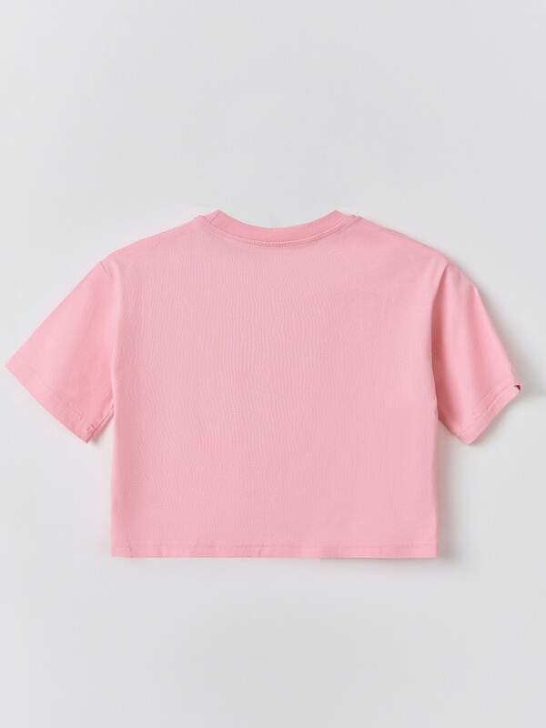 Футболка свободного силуэта. Горловина круглой формы, обтачка из рибаны. Рукава втачные свободные, линия плеча слегка спущена. Низ рукавов и футболки в подгибку.