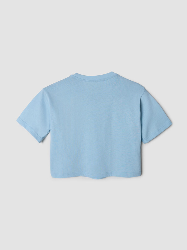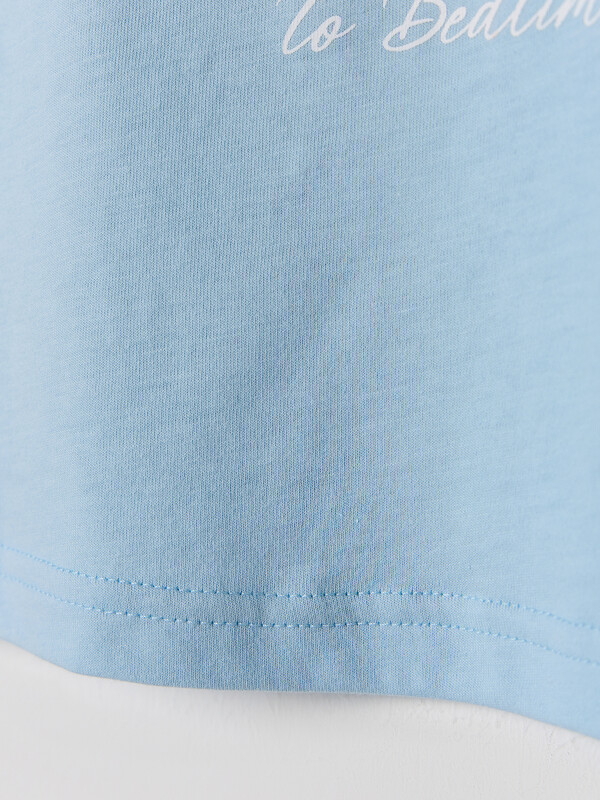 Футболка свободного силуэта. Горловина круглой формы, обтачка из рибаны. Рукава втачные свободные, линия плеча слегка спущена. Низ рукавов и футболки в подгибку.