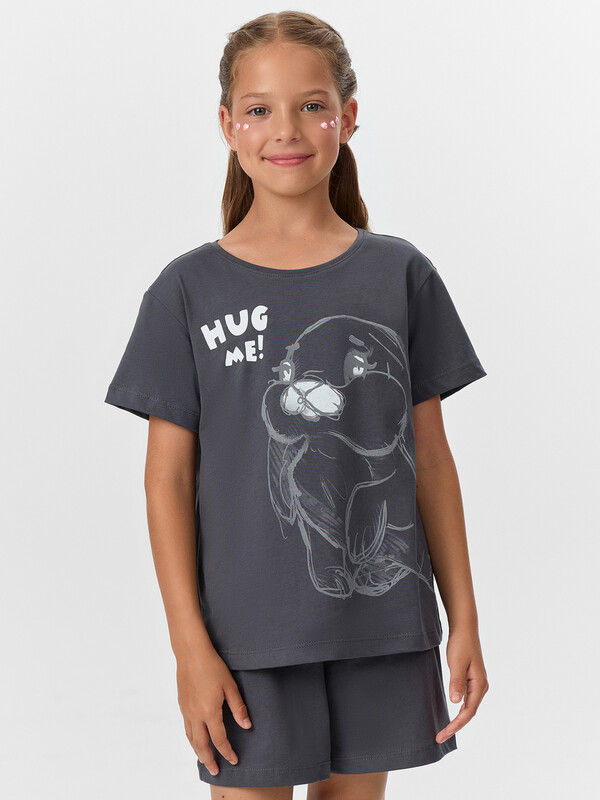 Комплект для девочки, состоит из футболки с короткими рукавами и шорт из натурального хлопка. Подходит для сна и отдыха. Материал очень приятный к телу, хорошо пропускает воздух, что позволяет чувствовать себя комфортно даже в жаркую погоду. Идеальный выбор детской одежды для дома. Стильно, красиво, комфортно. Футболка декорирована интересным принтом, шортики однотонные. Широкий размерный ряд, базовые и яркие расцветки, модели с принтами, рисунками и печатями. Купите детскую пижаму для девочки от Mark Formelle, порадуйте ребенка красивым и стильным подарком!