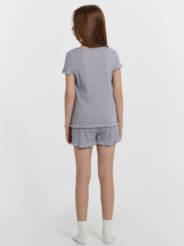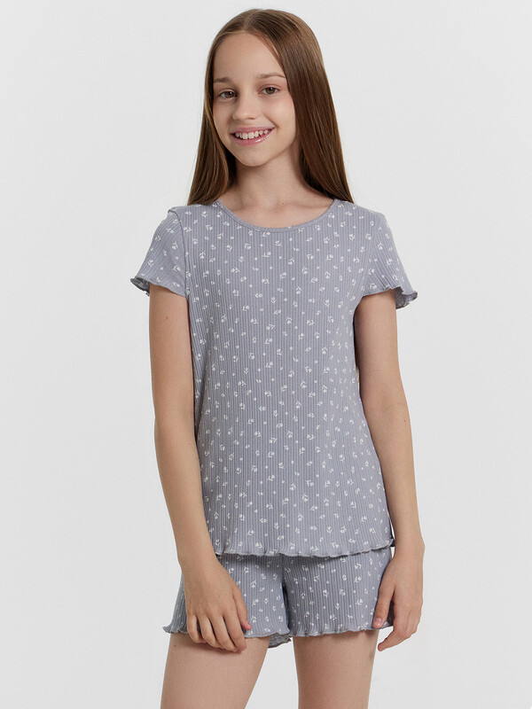 Нежная пижама для девочек состоит из футболки и шорт, выполненных из рибаны, что обеспечивает мягкость и комфорт при носке. Футболка имеет прямой силуэт и круглую горловину, создавая стильный и удобный образ. Шорты также имеют прямой силуэт и эластичный пояс, обеспечивая свободу движений и максимальный комфорт во время сна. Этот комплект идеально подходит для отдыха и сна, даря уют и спокойствие в любое время года. Нежный и приятный материал делает эту пижаму любимым выбором для маленьких ценительниц стиля.