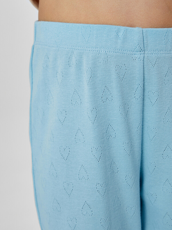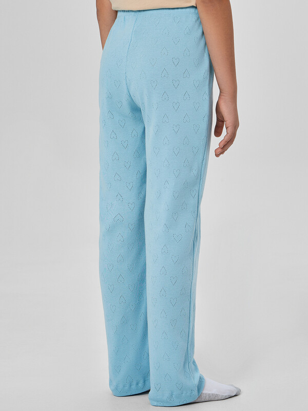 Лонгслив с круглой горловиной и длинными рукавами обеспечивает удобство и свободу движений во время сна или игр перед сном. Брюки прямого кроя на мягком широком поясе с эластичной резинкой не давят на талию и надежно фиксируются, не сползая при активном движении. Оба предмета изготовлены из эластичной рибаны, которая хорошо тянется, сохраняет форму после множества стирок и позволяет коже дышать.